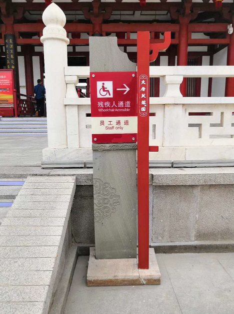 國(guó)家5A級(jí)旅游景區(qū)各種引導(dǎo)標(biāo)識(shí)(包括導(dǎo)游全景圖、導(dǎo)覽圖、標(biāo)識(shí)牌、景物介紹牌等觀景設(shè)施、路標(biāo)指示、宣傳資料)造型特色突出,藝術(shù)感和文化氣息濃厚,能烘托總體環(huán)境。標(biāo)識(shí)牌和景物介紹牌設(shè)置合理。